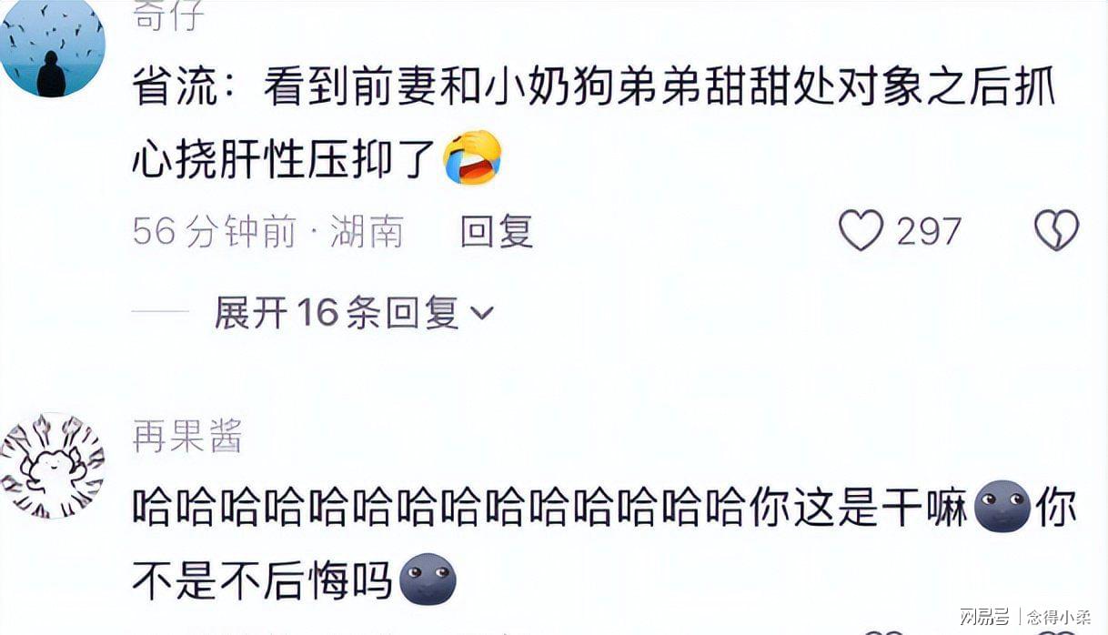 有网友留言调侃,这是看到前妻和新男友秀恩爱,车澈抓心挠肺的 压抑了。也有网友直接留言哈哈哈,嘲讽其不是不后悔离婚吗。