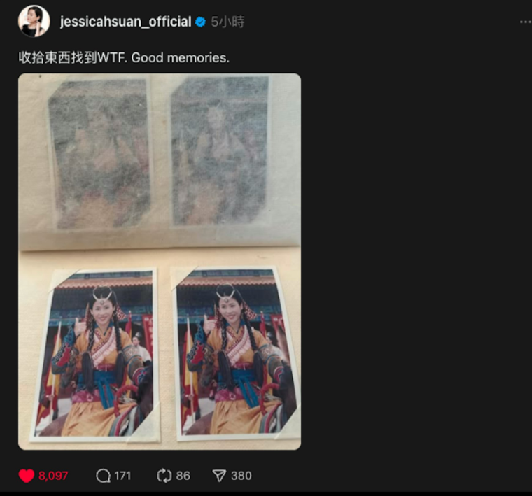 《寻秦记》电影版上映在即,宣萱近日在社交网发文称,自己在整理房间时,发现了一本收藏《寻秦记》美照的相册:“收拾东西找到 WTF. Good memories”。