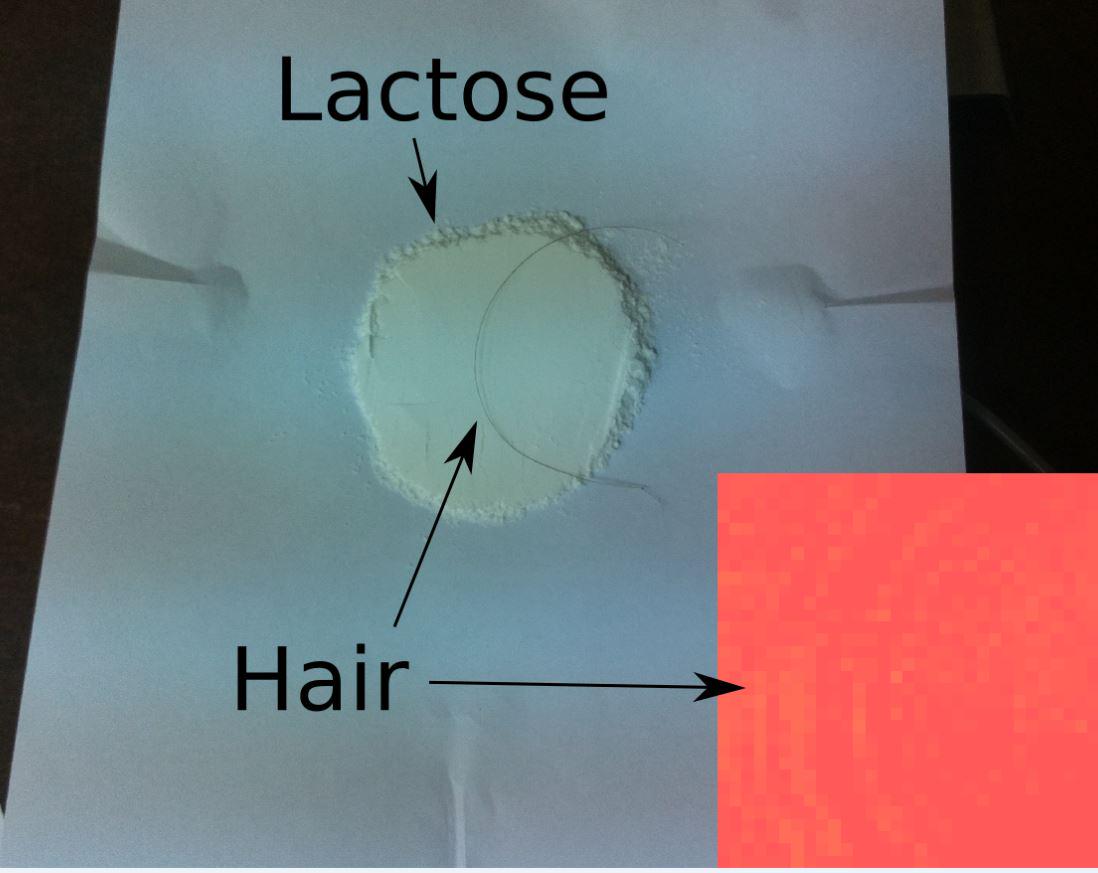 尽管传感器阵列像素尺寸为1.5x1.5毫米,且成像分辨率受限于100GHz工作频率下的波长3毫米,我们的太赫兹成像系统展现了令人着迷的无损检测能力。我们的专家成功检测到乳糖粉中的人类头发。