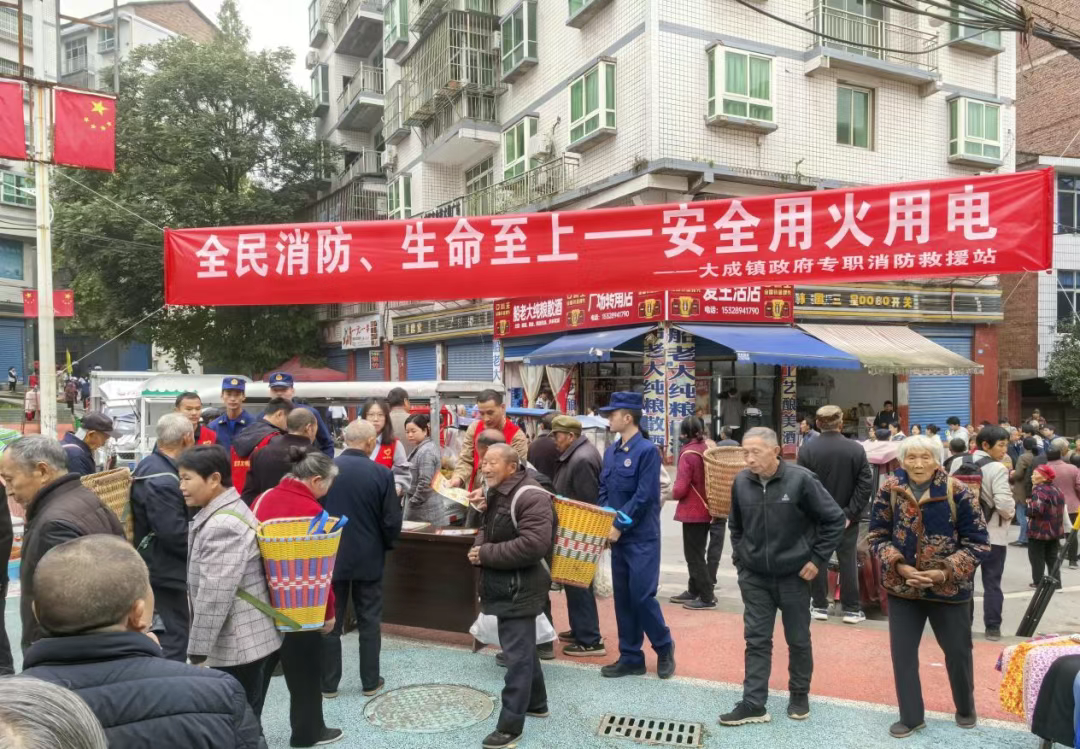 大成镇巧妙利用“赶场日”人群聚集时机,开展消防安全宣传活动。工作人员用当地方言,结合农村常见的秸秆焚烧、取暖不当、线路老化等真实案例,以案说法,详细讲解安全用火用电常识及报警、逃生方法。现场还展示了专业救援器材,让村民通过互动直观了解现代救援技术,增强了安全感。