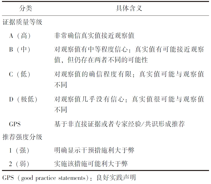 表1GRADE证据质量等级及推荐强度分级表