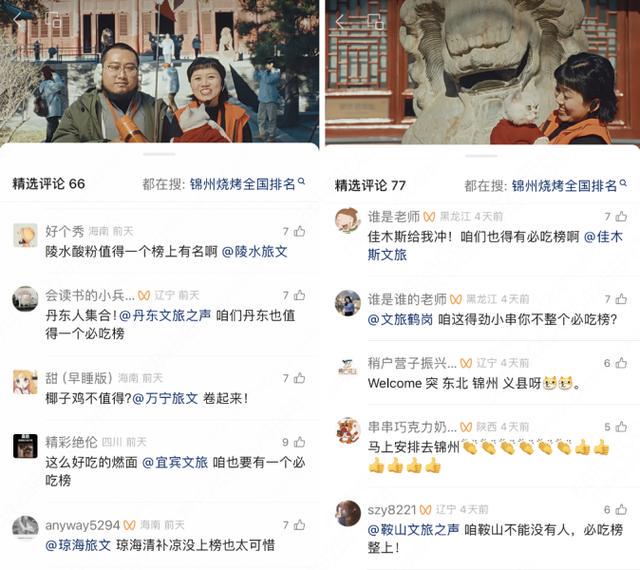 此前,锦州文旅局相关负责人就表示,策划视频的起因是近期市民与游客的呼声,榜单作为“城市美食名片”,有望能以美食为支点,拉动本地文旅消费。而莆田市文旅局业务负责人也提到:“莆田卤面、炝肉、豆浆炒米粉等一道道美食都蕴藏着莆田的烟火气,希望‘必吃榜’能来到莆田,助力传播本地的美食文化。”