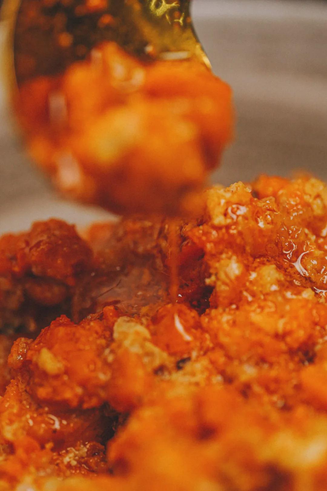 慢火炒制,不急不躁,让油脂慢慢被炒出来,