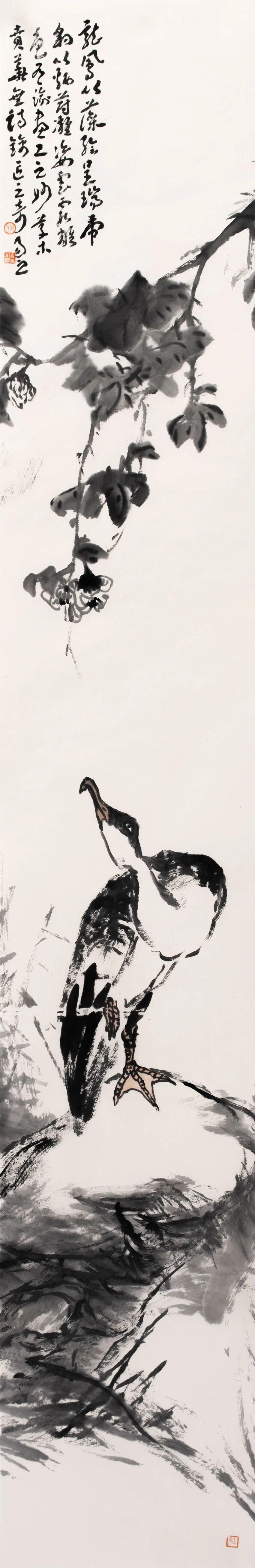 《寒霜白羽》138×23cm-纸本水墨-2025