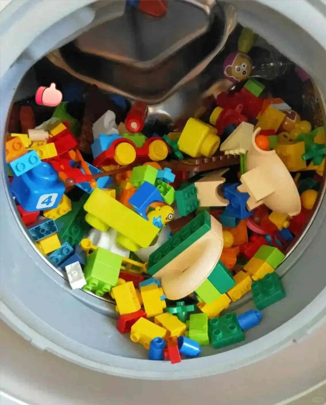 孩子的玩具也是需要定期消毒清洗的,如果是这种积木类的玩具,也可以把它放在洗衣机当中清洗,省时省力,把玩具放在洗衣袋当中,然后扔进洗衣机里面,洗完的玩具干干净净。