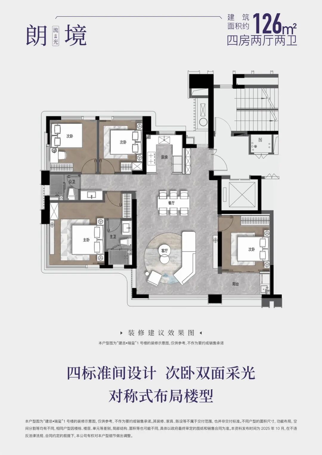 卓越产品力与纯粹圈层:项目在产品设计上体现了新一代改善住宅的标杆水准。全盘仅166套房源,全部为2梯2户纯板楼设计,主力户型为128㎡和149㎡的四房,保证了社区的纯粹性。3.1米的层高、玻璃幕墙外立面、配备东芝中央空调、威能地暖、西门子厨电等一线品牌的精装标准(据称超3000元/㎡),都显著提升了居住的品质感与舒适度。149㎡户型更创新性地采用双套房设计和270°转角飘窗,进一步优化了空间体验。这种产品设计加之周边政务机关单位林立,潜在邻居多为改善型家庭和政务精英,形成了纯粹的圈层氛围。