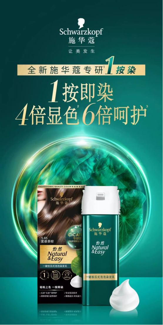 施华蔻1按染通过20亿微米乳泡达到时尚显色的效果,能够理想盖白。