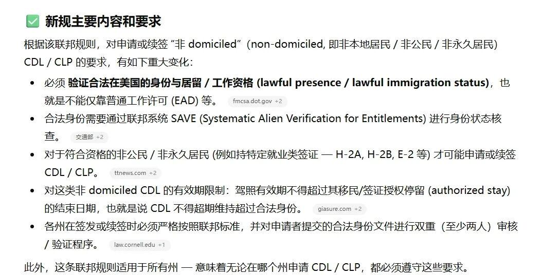 美国交通部近日颁布法规,大幅收紧商用大卡车驾照(Commercial Driver’s License, CDL)的签发条件,直接影响在美工作的外籍卡车司机群体。根据新规,仅美国公民、永久居民(绿卡持有者)或符合要求的特定工作签证持有人才有资格申请或续期CDL。