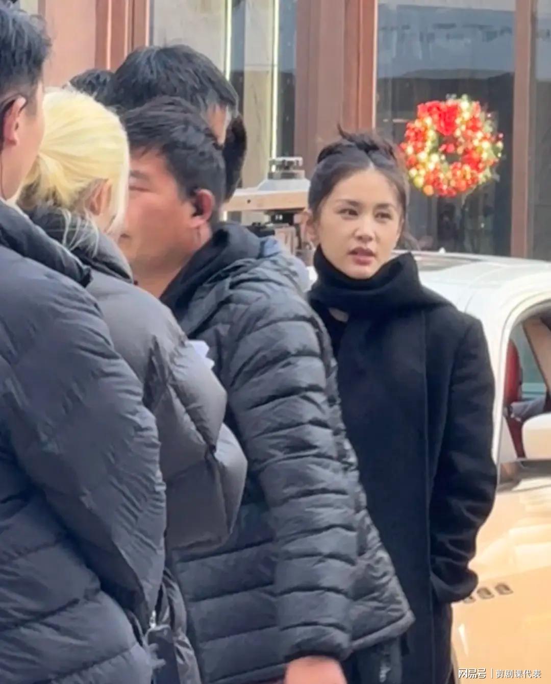 她站在拍摄设备旁等待时,双手插兜低着头,偶尔抬头跟导演交流,表情也有些不耐烦。