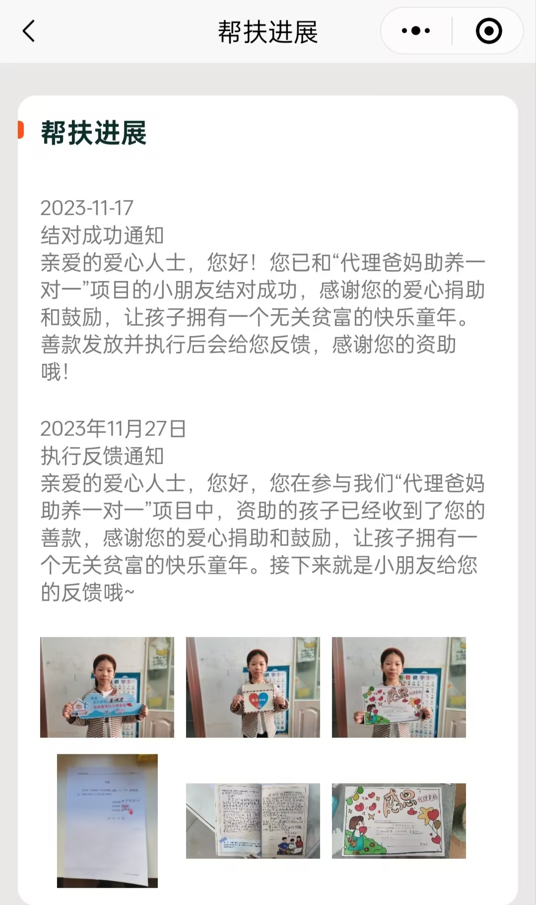 04.点击“我的一对一”,看到您捐赠孩子的具体进展反馈
