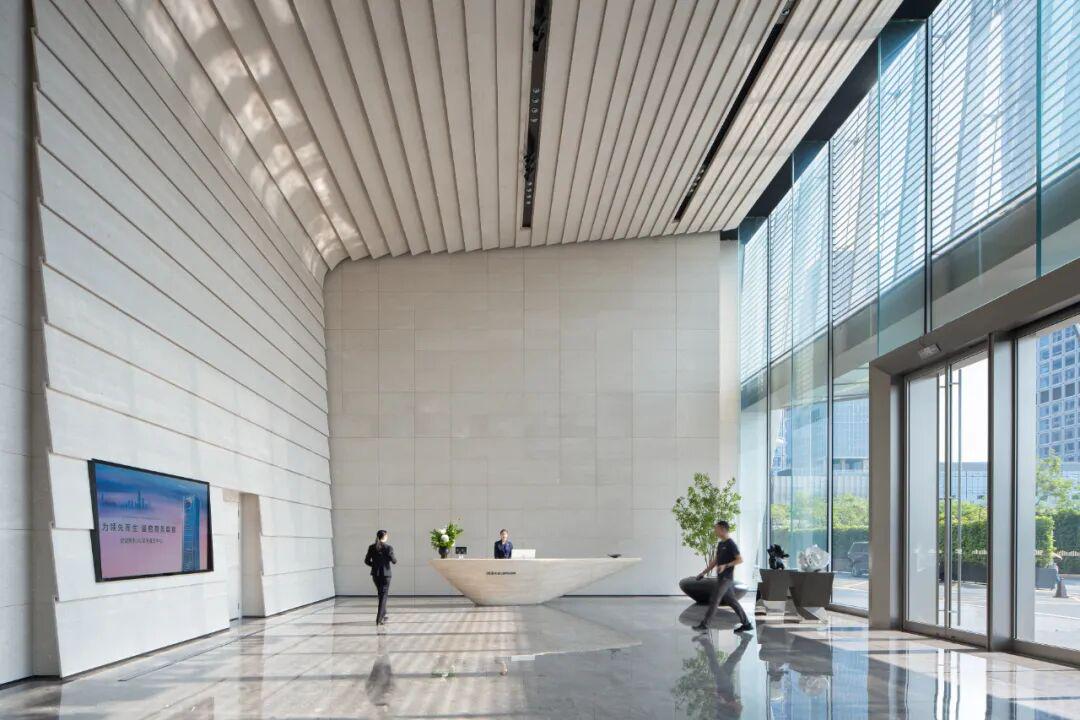 项目首层城市界面受限,如何在有限的资源内解决各个功能的出入口及交通组织,成为解题关键。设计通过设置港湾式落客、内凹庭院,巧妙解决甲级办公、高端办公、酒店、宴会、城市会客厅等多个功能的流线组织;同时,不同风格的入口大堂设计也充分契合各业态功能空间的定位和品质需求。