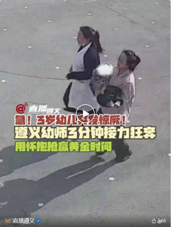 完成初步处置后,王婷婷与骆萱再次抱起小宇,园内同事吴文凝也迅速冲到车库发动车辆,紧急将孩子送往遵义医科大学第二附属医院。途中,小宇的症状逐渐缓解,逐渐恢复意识。骆萱全程密切观察孩子状态,不断呼叫、与孩子交流,防止其再次昏迷。