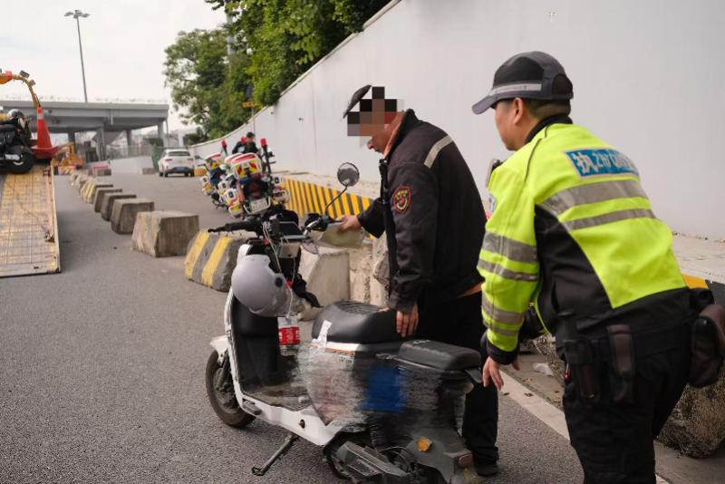 另一名电动自行车车主因驾驶无牌车,被交警拦下。经交警询问,其无法出示预约上牌的记录。最终,车主因未悬挂广州市登记的有效号牌,且在桥梁隧道等禁止通行区域行驶,被暂扣车辆。