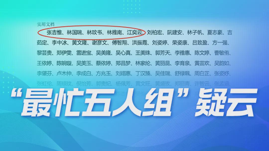最近,网友们挖掘出了全中国“最卷”、“最忙”、也“最神秘”的五个人。他们分别是:张吉惟、林国瑞、林玟书、林雅南、江奕云。