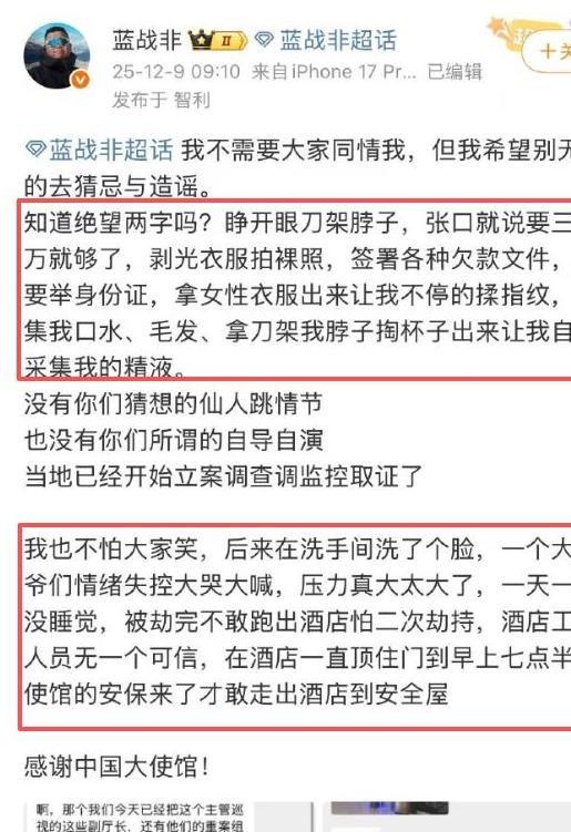 在异国他乡的酒店包间内,本是旅游博主蓝战非记录南非风光的落脚点,没成想却变成了惊魂四小时的“囚笼”。