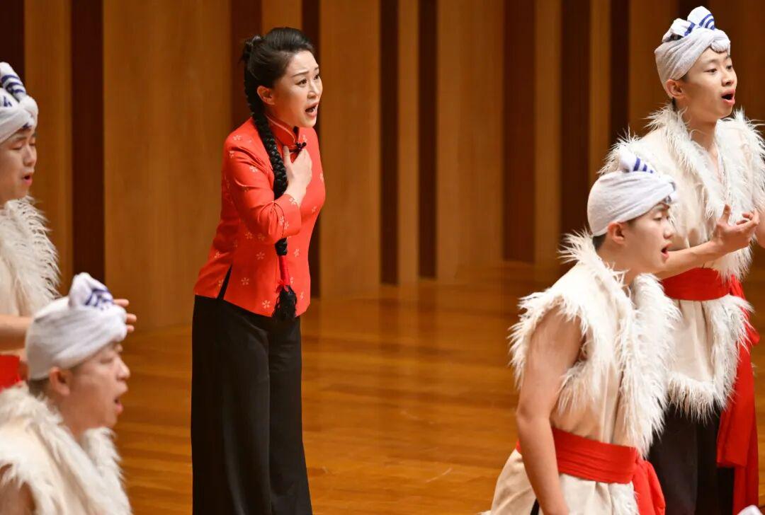 榆林市文化馆干部、全国群星奖获得者杜锐霞受邀领唱经典陕北民歌《走西口》,以高亢有穿透力的嗓音与深厚艺术底蕴,将陕北民歌的质朴情感与艺术张力展现得淋漓尽致,成为整场演出的核心亮点,让国家级陕北文化生态保护区的鲜活魅力直抵国家级艺术殿堂。
