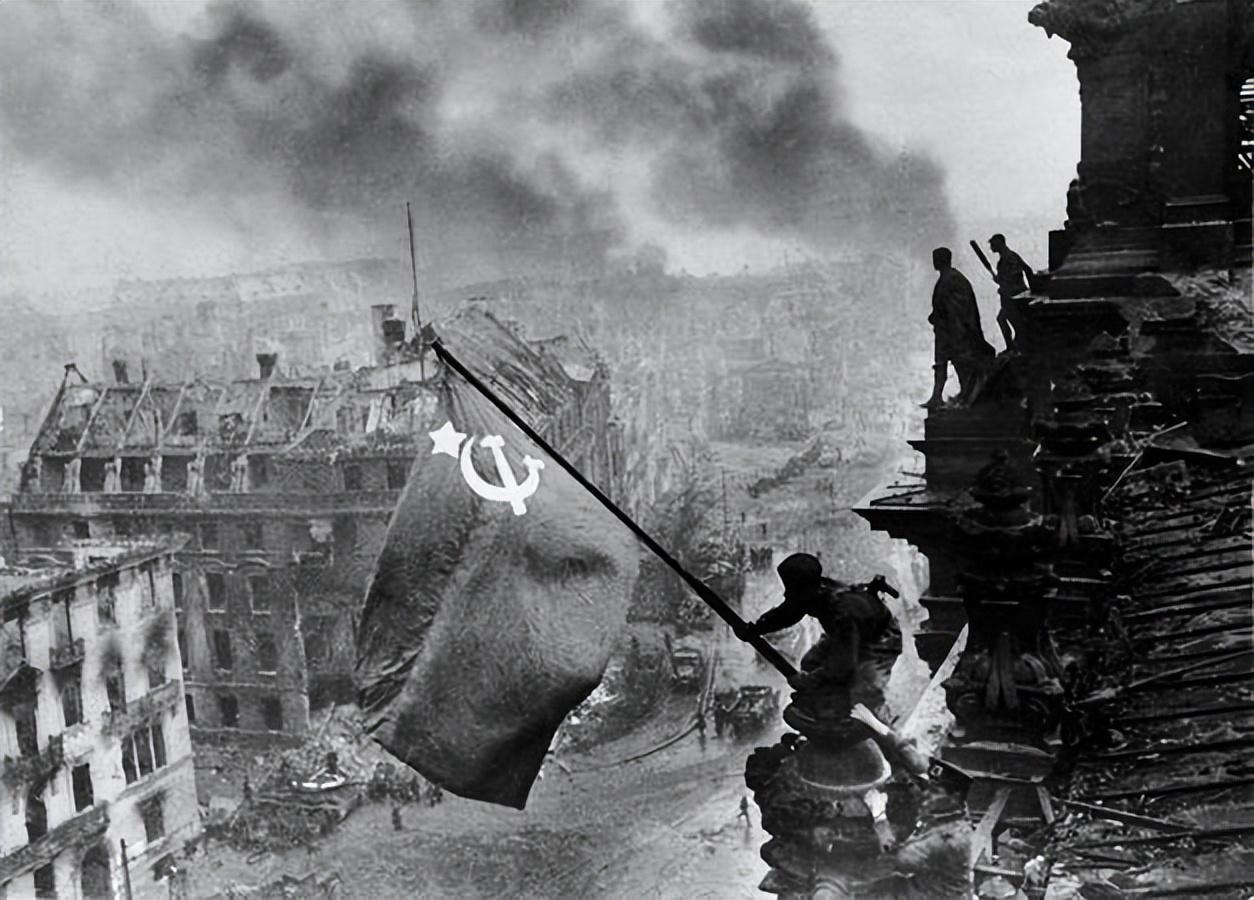 朱可夫骑着白马检阅部队,两百多面纳粹军旗被抛在列宁墓脚下。