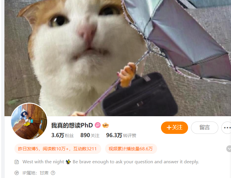 然而现在你看她的微博名字,“我真的想读phD”