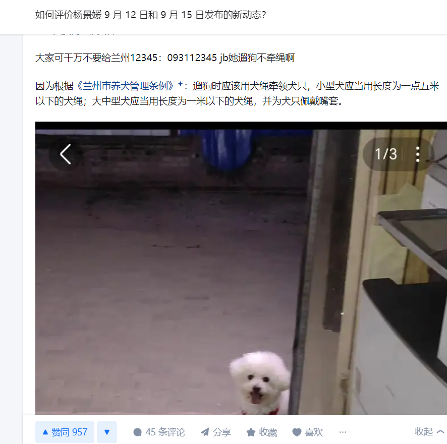 她嘴上不会承认,最近还在微博上发遛狗等日常生活,以显示淡定从容。