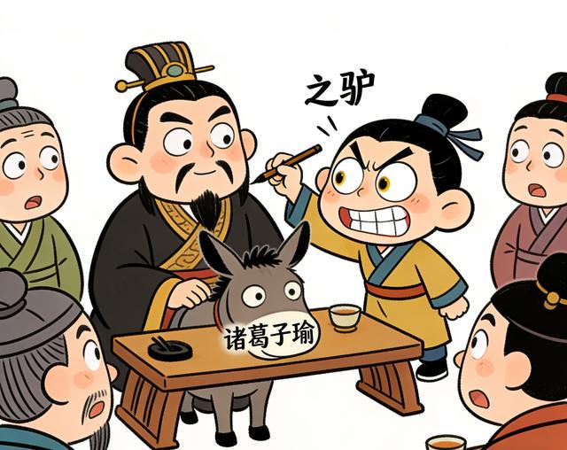 诸葛恪的人生起点,是靠智商"一战成名"。他爹诸葛瑾脸长得像驴,孙权这老板爱开玩笑,某天宴会特意牵来一头驴,驴脸上写着"诸葛子瑜"(诸葛瑾的字),满朝大臣笑得前仰后合。六岁的诸葛恪一看老爹下不来台,当场跪请孙权赐笔,在后面添了"之驴"二字,瞬间把嘲讽变成"孙权赐驴给诸葛瑾"的美谈,不仅救了场,还抱走了一头驴。
