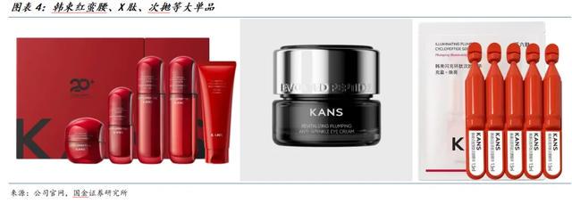 方法论2)产品策略:以爆款大单品为基础,再拓品类打开成长空间。韩束早期通过电视购物渠道的“高性价比套盒”快速起量,后期通过红蛮腰套盒占领抖音下沉市场,同时推出X肽面霜、次抛精华等中高端单品扩充品类矩阵,其他品牌也普遍采取这一策略:
