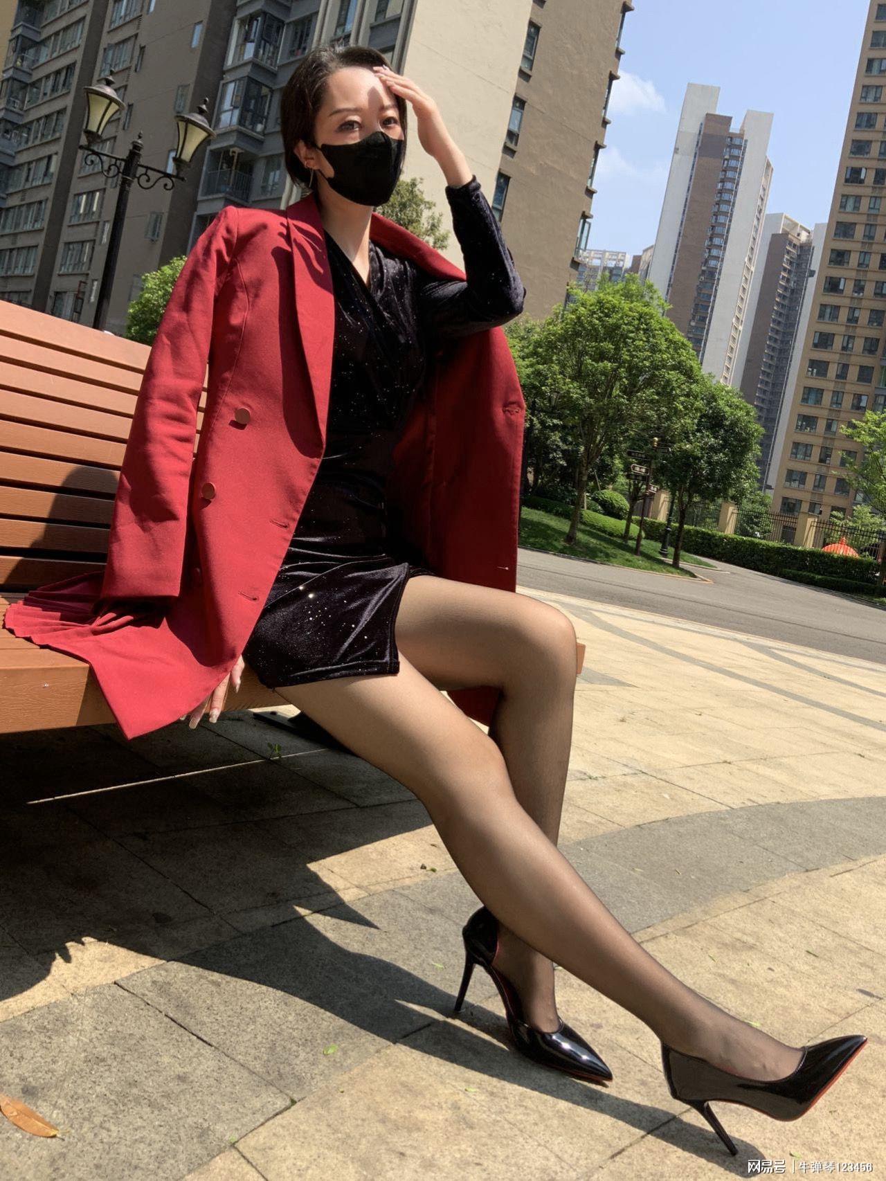 这红黑搭配啊,真是老祖宗传下来的智慧,像火锅配香油碟那么对味儿,红色一下子就把人的精气神给提起来了,又亮眼又正,黑色呢就在底下稳稳托着,显瘦不说,还显得人格外修长,你瞅她那腿,在黑色丝袜和高跟鞋的加持下.好家伙,那腿长效果感觉比我的人生规划还长.