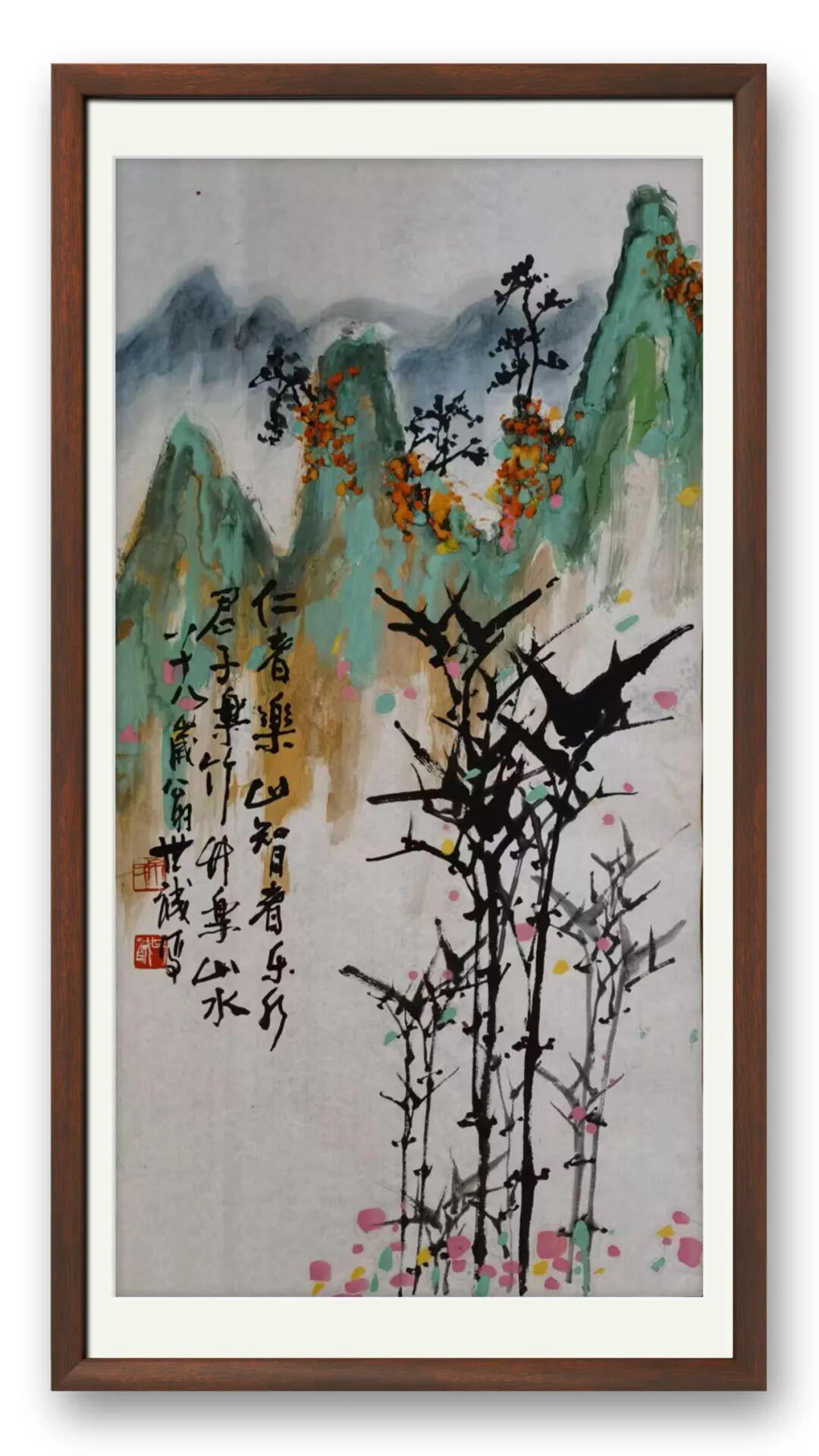 魂脉在韵,先生的墨色从尚清雅。不施浓艳,只以淡墨求真,浑厚中透着典雅,如晨雾笼竹,朦胧而不失筋骨,清净却绝非冷清。这份“淡”,是洗尽铅华的纯粹,暗合文人“朴素为美”的追求。画面里,烟雾有禅意,群山含大气,近竹藏闲适,真正做到“远观其势,近观其致”——远看气韵开阔如沐春风,近品笔墨匠心似嚼青茗。