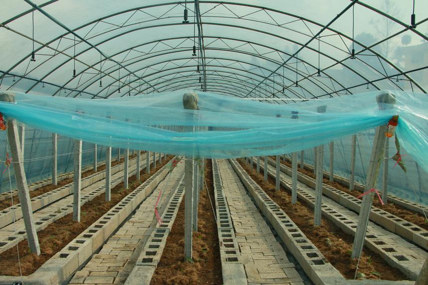 贵州兰芯生物科技有限公司在阳明洞街道程官村流转设施大棚内部。