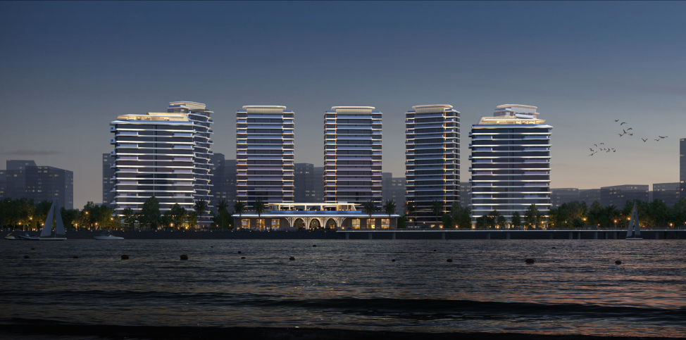 采用轻盈独特的滨水风格和海洋文化流体美学进行立面设计。以天空游轮为灵感,流畅的弧线设计立面采用幕墙设计+曲面玻璃,体现自由浪漫的滨海气息。