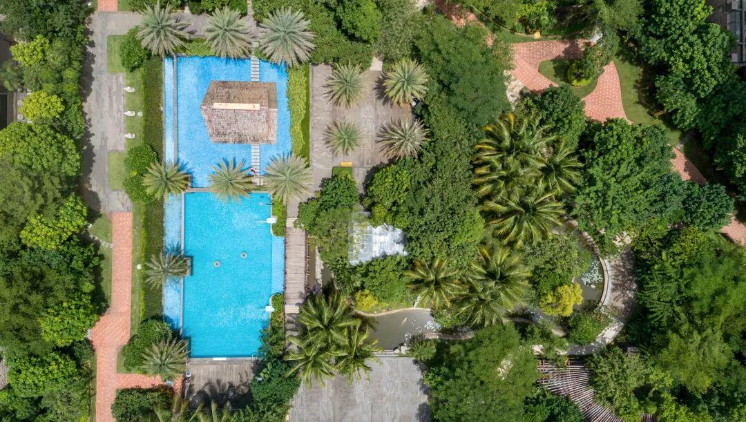 华亚·万宁花园建筑立面延续一期东南亚设计风格,突破性采用围合式建筑布局,让人和自然景观和谐相处。