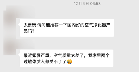 ▲快报厂购用户群里,群友们纷纷催上空气净化器。