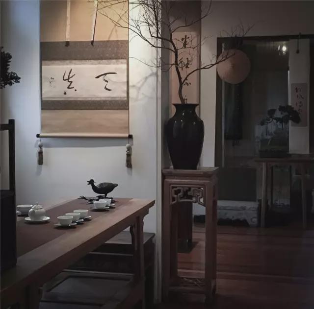 茶室之美,在简素,在高雅,张挂的字画宜少不宜多,应突出重点。当茶室不是很大时,一幅精心挑选的主题字画,再配一两幅陪衬就足够了。