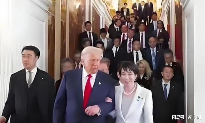在横须贺军港的航母甲板上,当特朗普介绍她是“日本首位女首相”时,高市早苗竟然兴奋得像个小女生一样,围着特朗普转了一圈,甚至在下台阶时直接亲密地挽住了特朗普的胳膊。