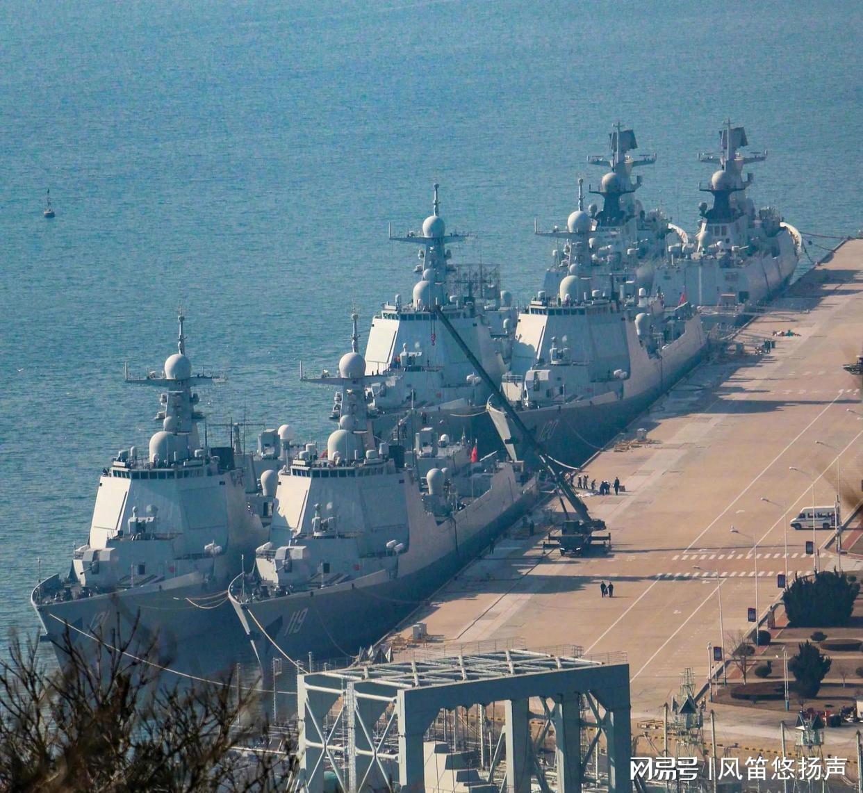 南海舰队某驱逐舰支队的码头景象,直观展现了中国海军相控阵驱逐舰部队的硬实力——8艘巨舰整齐列阵,其中包含2艘055型万吨大驱、3艘052D型导弹驱逐舰、1艘052C型导弹驱逐舰,外加2艘054A型导弹护卫舰,总吨位接近6万吨。
