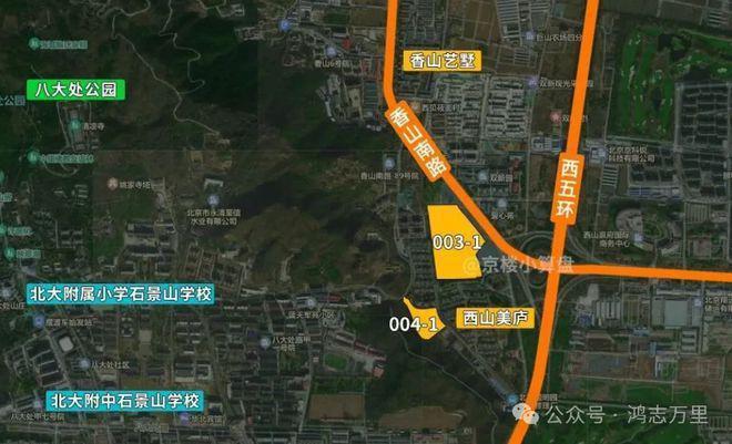 地块位于西五环边,南侧是西山美庐,1公里内有香山壹号院、颐和金茂府。