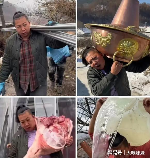 镜头里,她会说着“魔性”的东北话,在农家小院里咔咔一顿劈柴、腌酸菜、做杀猪菜,那叫一个利索。