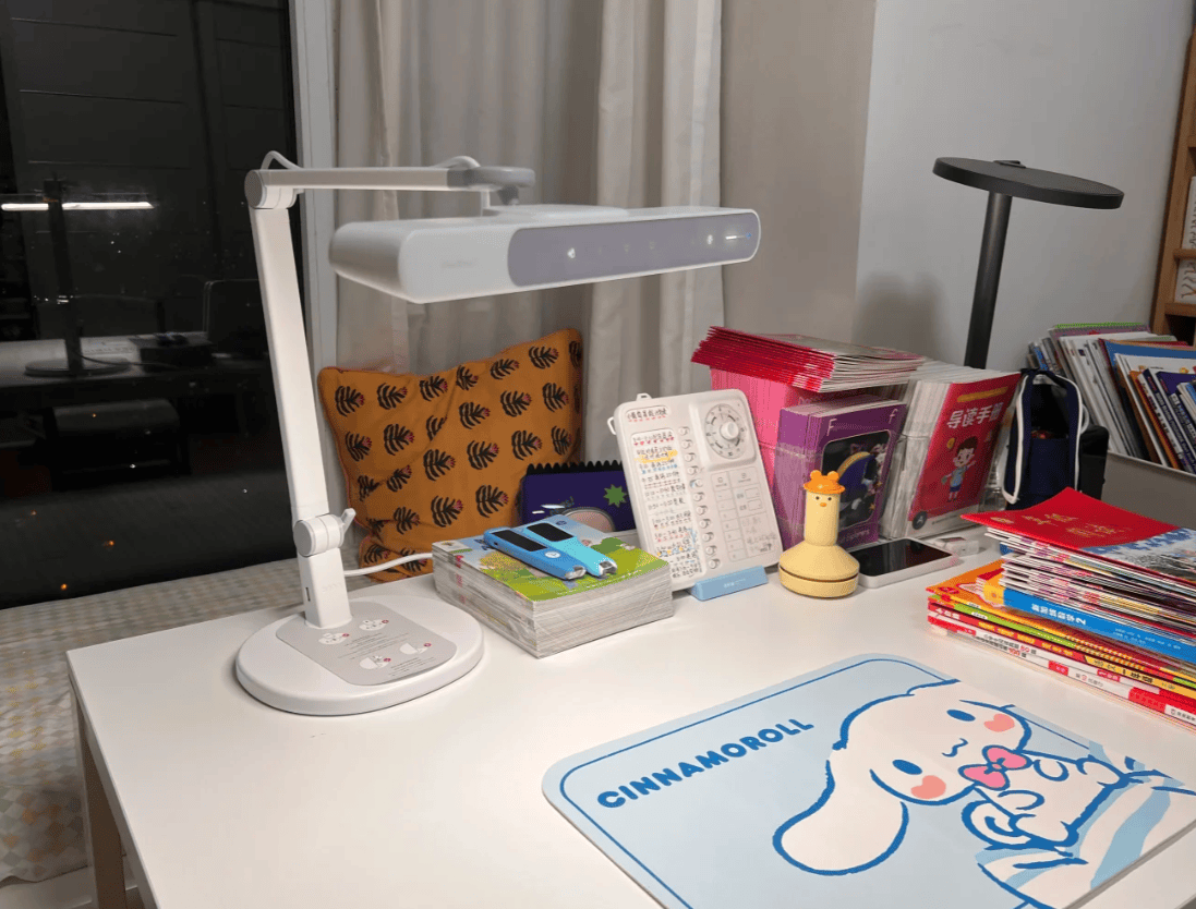 照明体验:书客采用圆盘式发光面,可覆盖约2米学习区域,为保证长时间用眼安全,它搭载第三代SDIT自适应调光系统,以每秒120次监测环境亮度,并自动维持在舒适照度范围,同时配合自研DT多维漫射2.0技术让光线柔和度提升近89%,实现明亮却不刺眼的照明效果,减少视觉压力并提升长时间学习时的舒适度。