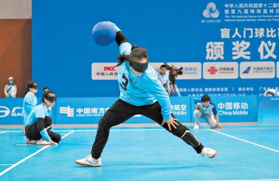昨天,盲人门球女子组1-8名交叉赛上,北京队以12∶2的大比分战胜河北队。北京日报特派记者 安旭东摄