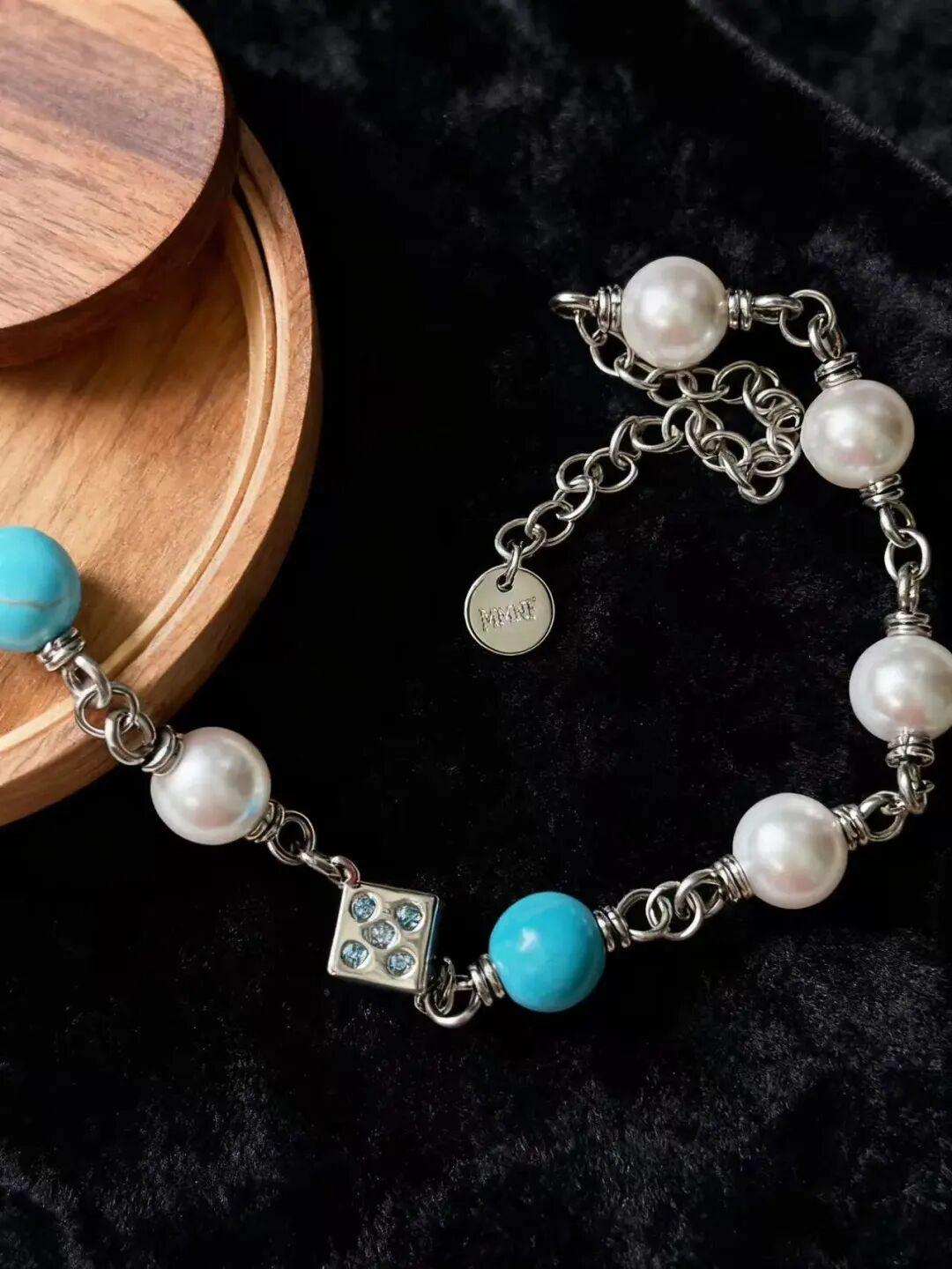 另外,限量「决胜之链」绿松石+珍珠+蓝彩锆钻项链,正式发售了!钛钢尾链 | 绿松石+再造珍珠+锆石镶嵌 | 铜制骰子镶嵌蓝彩锆钻,53CM+9CM(可自由调节)钛钢尾链,赚钱不交朋友!