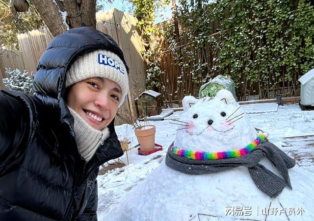 堆完雪猫后,姚晨拿出手机,想要记录下这个温暖的瞬间。