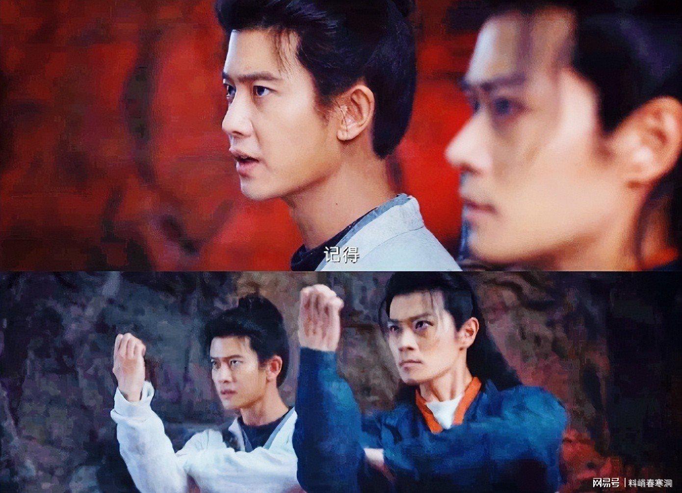 特别是和任嘉伦做同样动作的时候,他的动作明显更加有力和有气势。