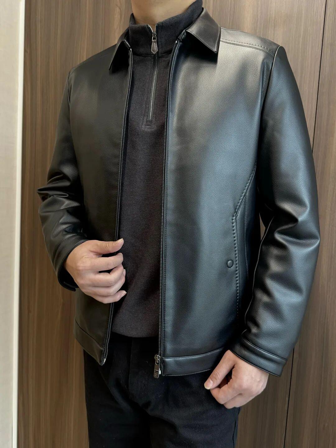 鹿皮纹理,皮质细腻柔滑,超级无敌软,耐刮耐穿,易打理 立领/翻领两款,每一款都是是利落显精神,可商务也可休闲 立体剪裁直身版型,有余量,舒适包容,上身显瘦有型