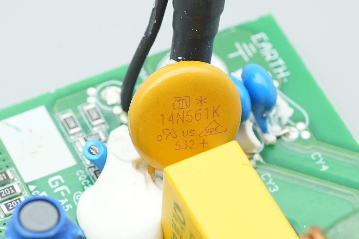 压敏电阻来自久尹,型号14N561K,用于吸收过压浪涌。