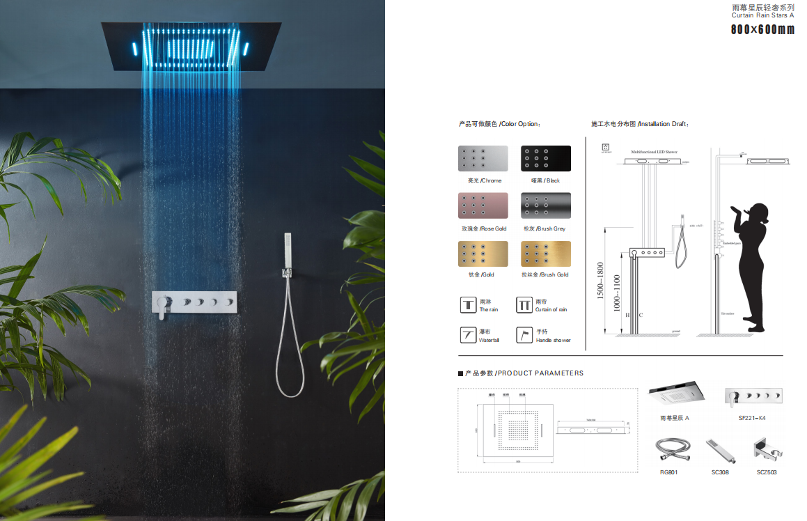 品牌突破传统淋浴功能局限,将 AI 智能与情调场景深度融合,实现 “人来即开、人走即关” 智能感应,搭配自定义灯光、水温记忆、音乐联动等功能,让淋浴升级为沉浸式体验。