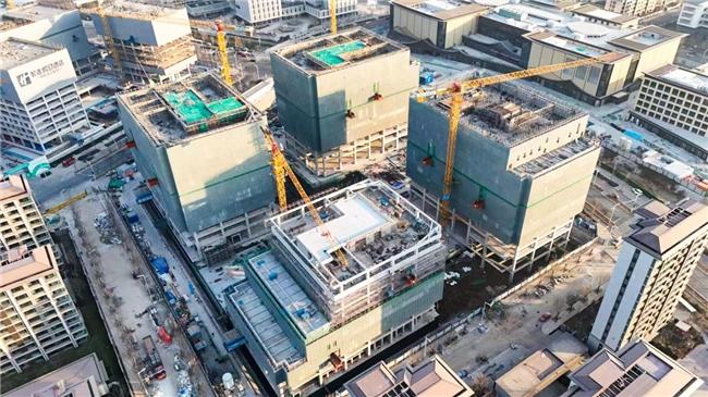 近日,中建一局北京公司承建的雄安绿发广场项目主体结构全面封顶,正式进入二次结构施工阶段。