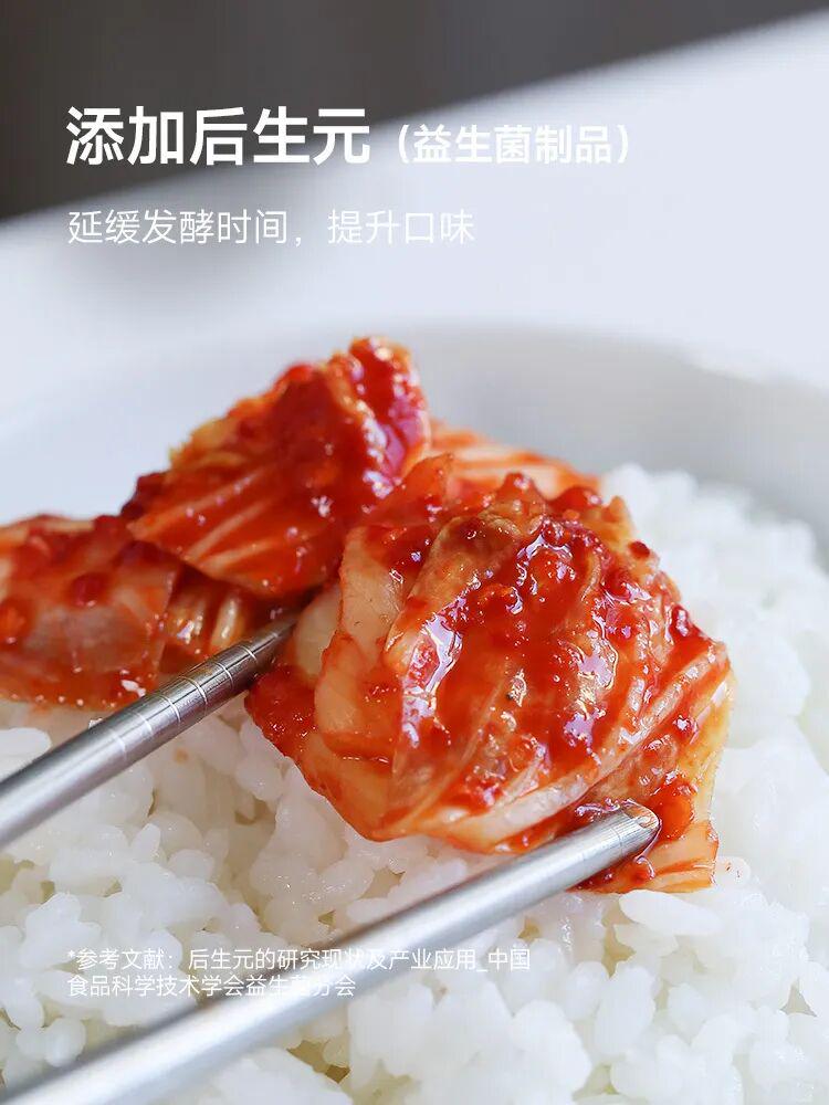 特别添加后生元,能延缓发酵速度,解决了普通辣白菜“放几天就酸过头”的问题。