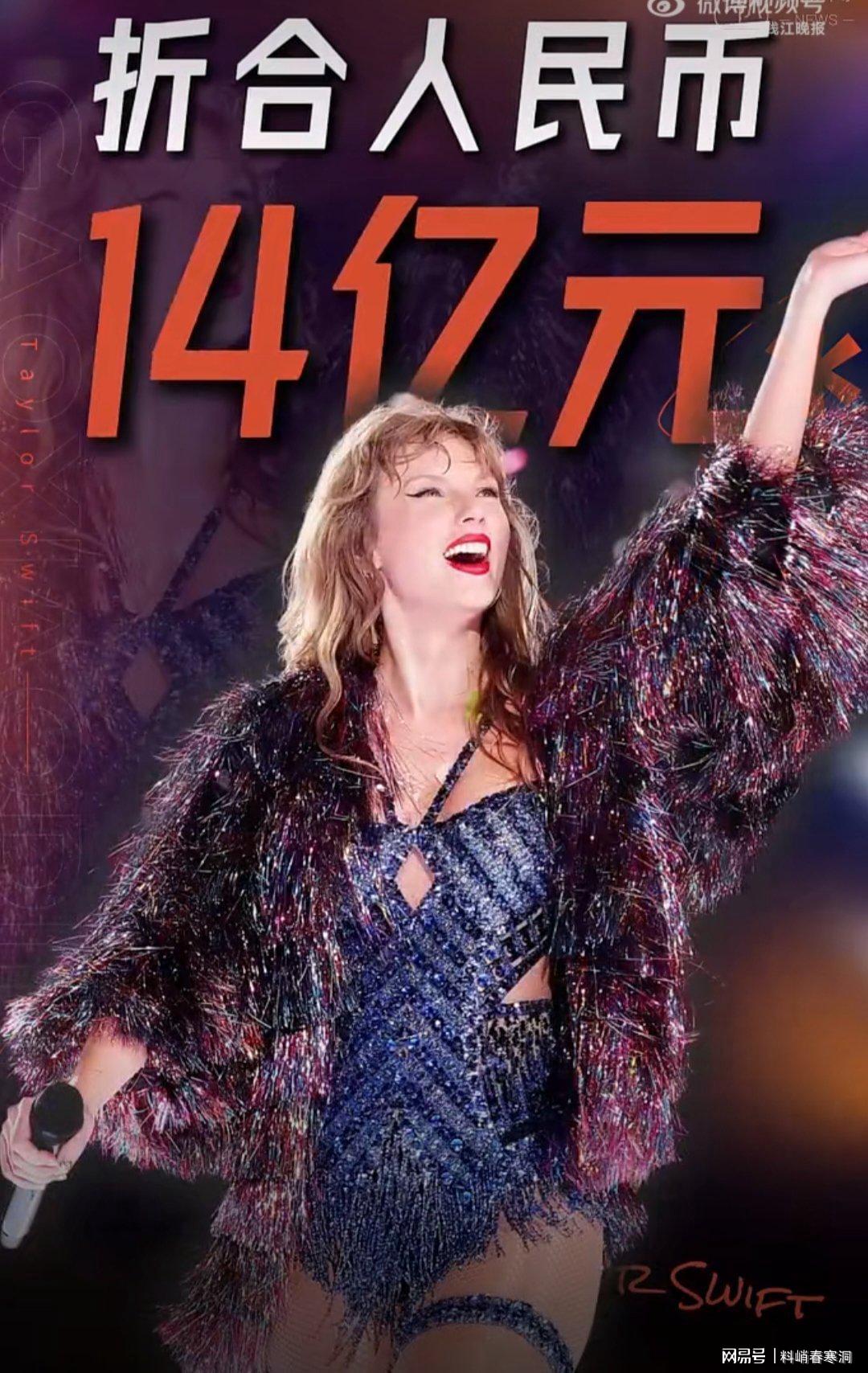 泰勒·斯威夫特(霉霉)此次巡演横跨21国149场,狂揽22亿美元票房创全球纪录,奖金占比约10%。