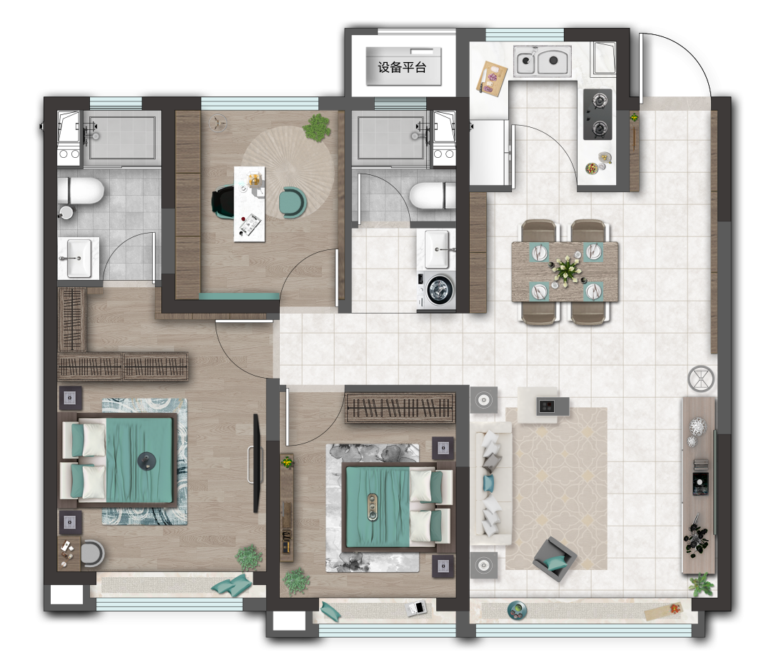 约115㎡样板间精装示意图