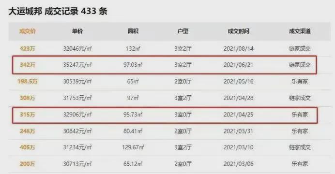 21年大运城邦97平的3房成交价去到了342万,单价约3.5万/平。