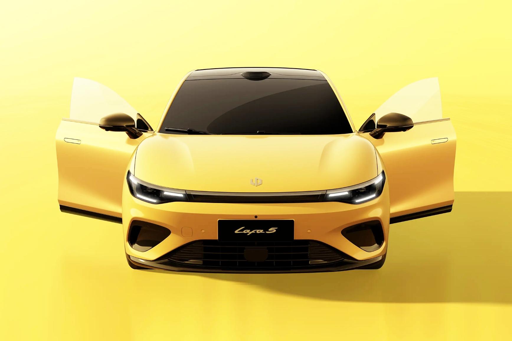 首先零跑Lafa5这个名字,就带着点“搞事情”的味道,跳出家族常规的“ABCD”命名,而是贴靠法拉利这样的超跑命名风格。细节方面来看,前脸三段式的前头灯,下方突出的亮黑前唇,加上一些降低风阻的设计,整体看起来就十分科技动感。